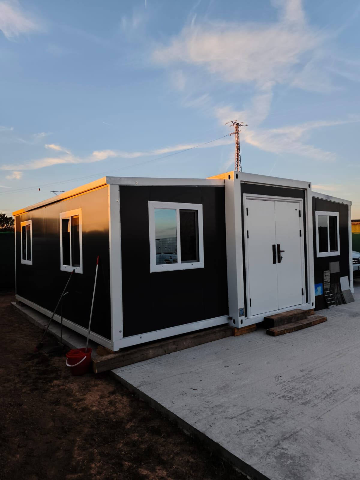 - Fachada compuesta por una capa de panel sándwich de espesor 75mm acabado exterior en antracita y acabado interior madera clara.